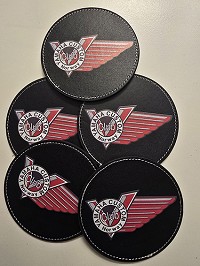 Elegant underlag for glass, kaffekopper og ølkrus med klubbens logo. Laget i sort kunstskinn. Laget i begrenset opplag på 100 stk. det kan bestilles flere, hvis det blir stor etterspørsel.